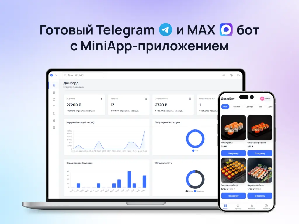 Продается полноценная CMS система для управлением Telegram и Max ботом с MiniApp. Сам интерфейс приложения мультиплатформенный и работает на любых устройствах, при желании можно доработать до десктоп сайта.