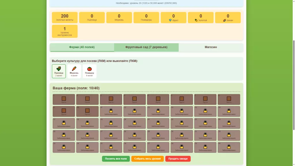 Выращивайте и развивайте: Ухаживайте за растениями, поливайте, удобряйте и защищайте их от прожорливых вредителей. От маленького огородика до огромной фермы с фруктовыми деревьями и теплицами!