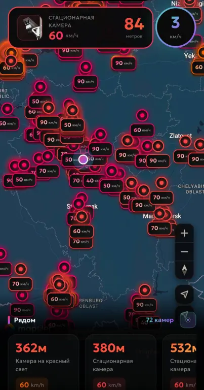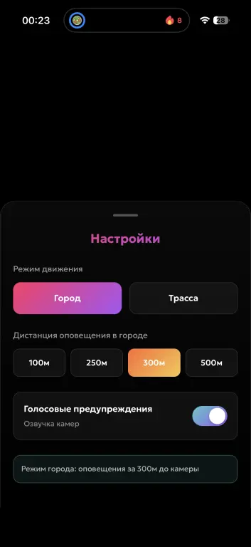 - Звуковое предупреждение каждые 3км, 1км, 750м, 500м, 250м, 100м
