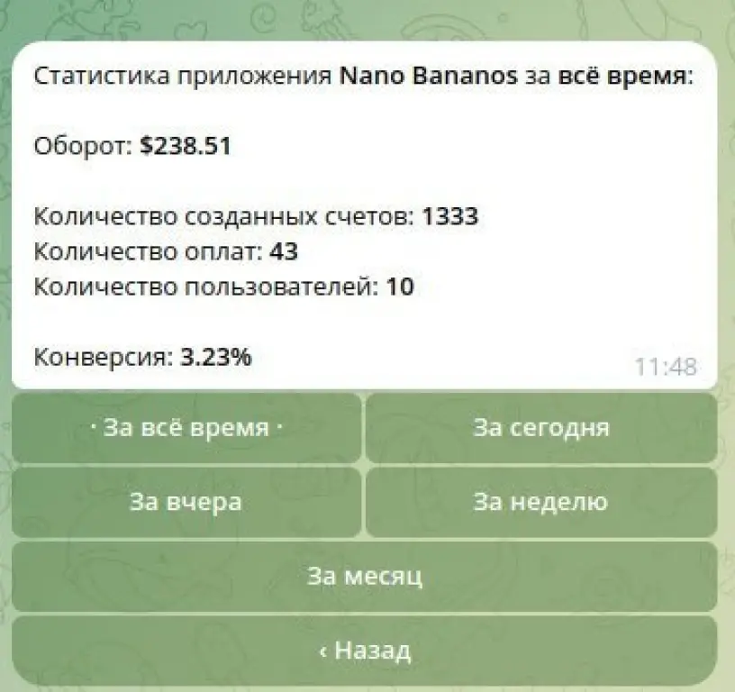 - Общая выручка за 8 месяцев: 560 000 ₽ (+ оплаты в крипте и Telegram Stars).