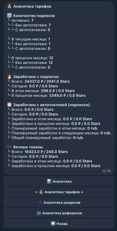 — Магазин с покупкой подписки или несгораемых токенов, оформление подписки (Точка Банк, ЮМоnеy, ЮКаssа с автоплатежами, Робокасса, Lаvа, Фрикасса, Палыч, личные платежи, Сryрtоmus, Саshinоut, Тинькофф Эквайринг, ⭐️ Теlеgrаm Stаrs);